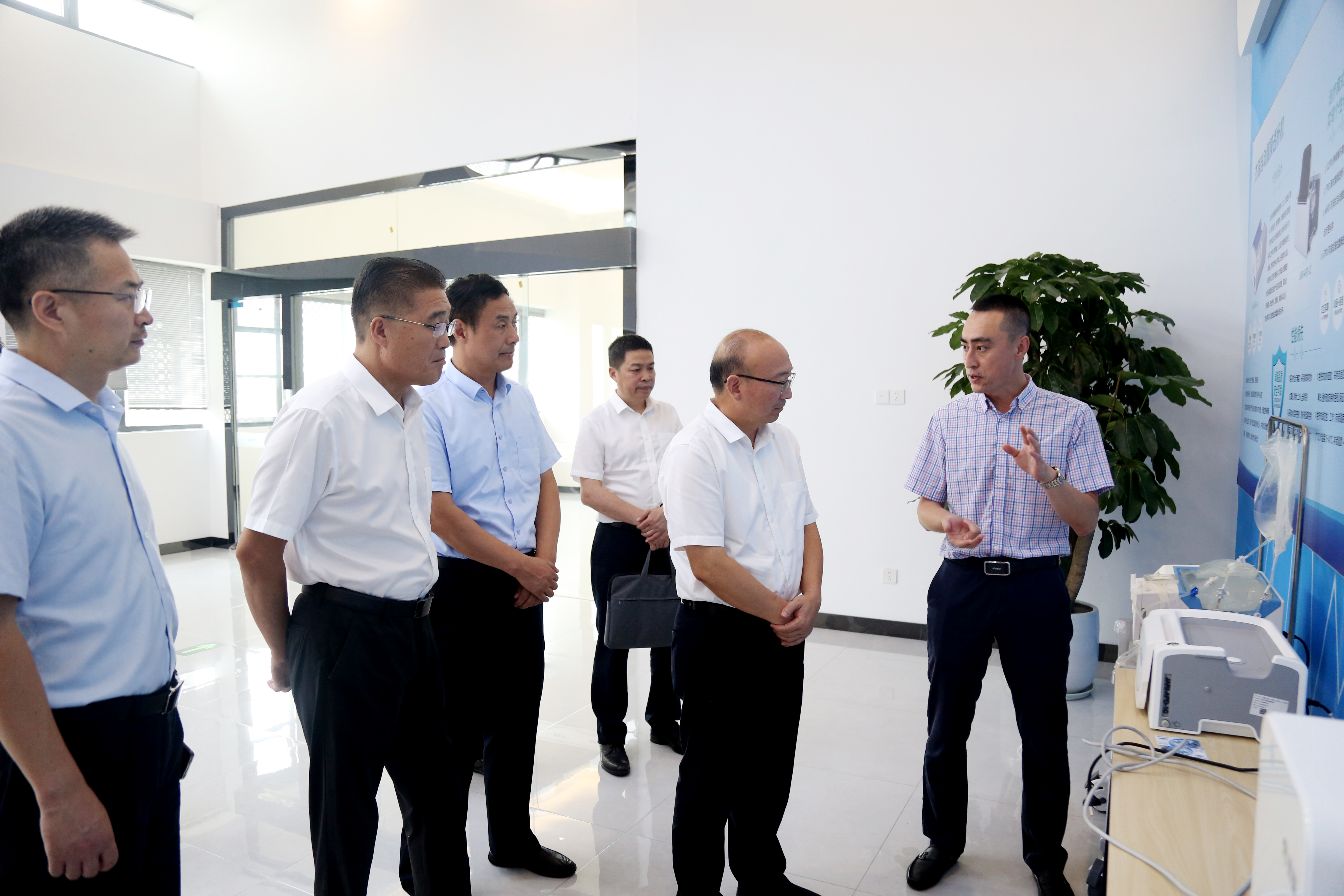 丁锐先后查看了杰瑞医疗自动腹膜透析全产业链项目生产、办公、研发实验室等现场,在听取了相关企业生产经营情况介绍后,对入驻企业支持园区发展表示感谢,对提出的意见建议进行了解答,对园区管理和服务提出了更高要求:要转变园区服务理念,牢固树立“园内事包办、园外事帮办”的理念,加快完善园区配套,促进入驻企业更好发展。要打造园区服务品牌,高标准提升软件水平,为入驻企业提供个性化、保姆式服务。要优化园区服务环境,坚持“利商美商是第一工作取向”,切实做到问题早解决、项目快投产、服务有成效,让企业安心经营、员工舒心生活。