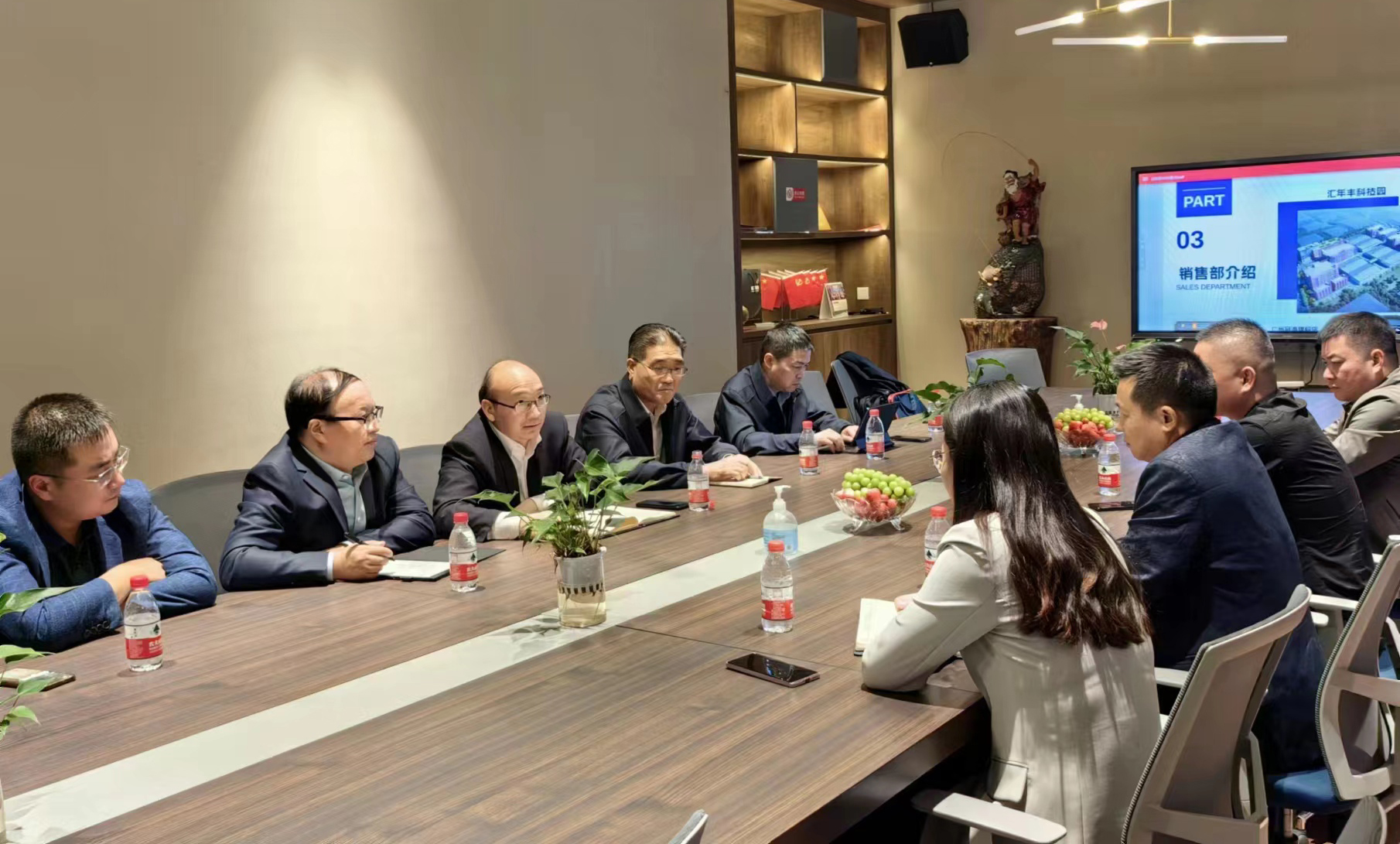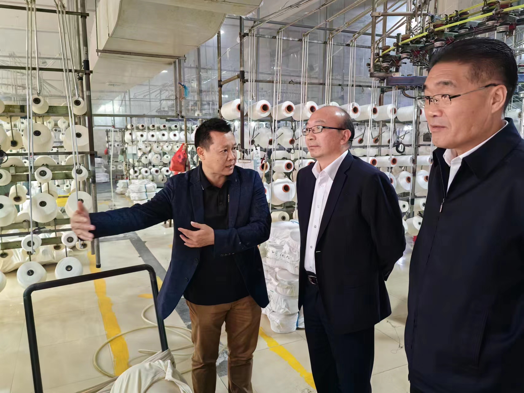 在汇年丰纺织公司,丁锐一行在陆汝针总经理的陪同下参观了该公司纺织生产线,并就产品定位、成本、质量及交期等有关情况进行了座谈交流。双方表示,工投云开平台与汇年丰纺织建立了良好的业务合作关系,希望下一步能够继续加深合作,扩大业务量。