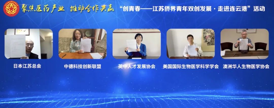 活动中,云开平台公司通过线上方式,与日本江苏总会、中德科技创新联盟、英中人才发展协会、美国国际生物医学学会、澳洲华人生物医学科学协会等海外侨社团签署了合作意向书;云开平台公司国际医药创新产业园与4家省内侨青企业现场签订合作协议。