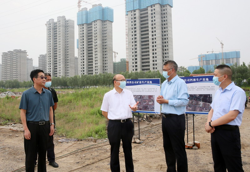 丁锐一行先后到海州湾公司矿卤复产、翔立市政工程、海州湾工业园、钙液生产区域和美多利科技创业园等现场,详细了解盐业生产、项目建设、土地开发、安全管理等情况,并为奋战在一线的员工送去防暑降温物品。