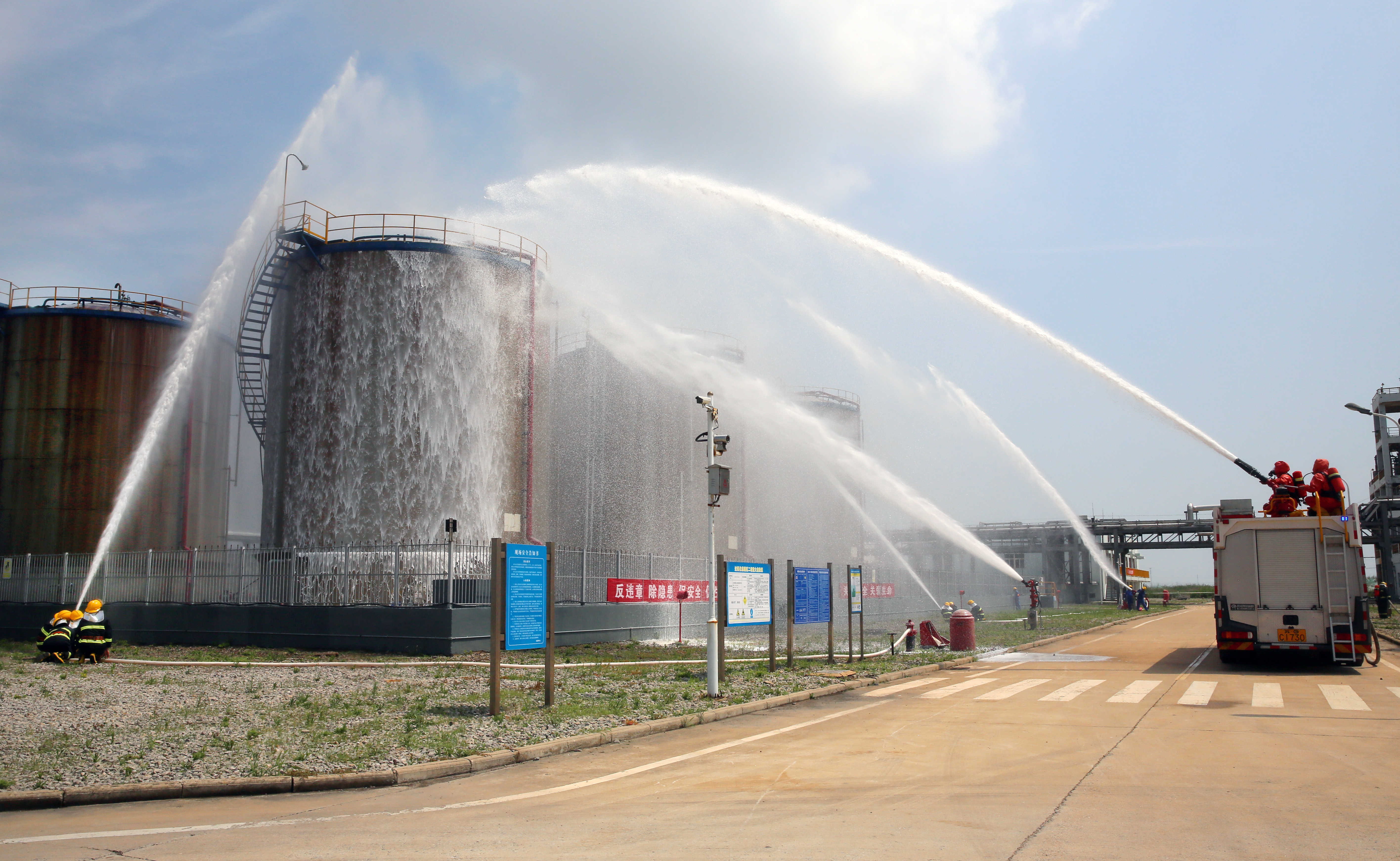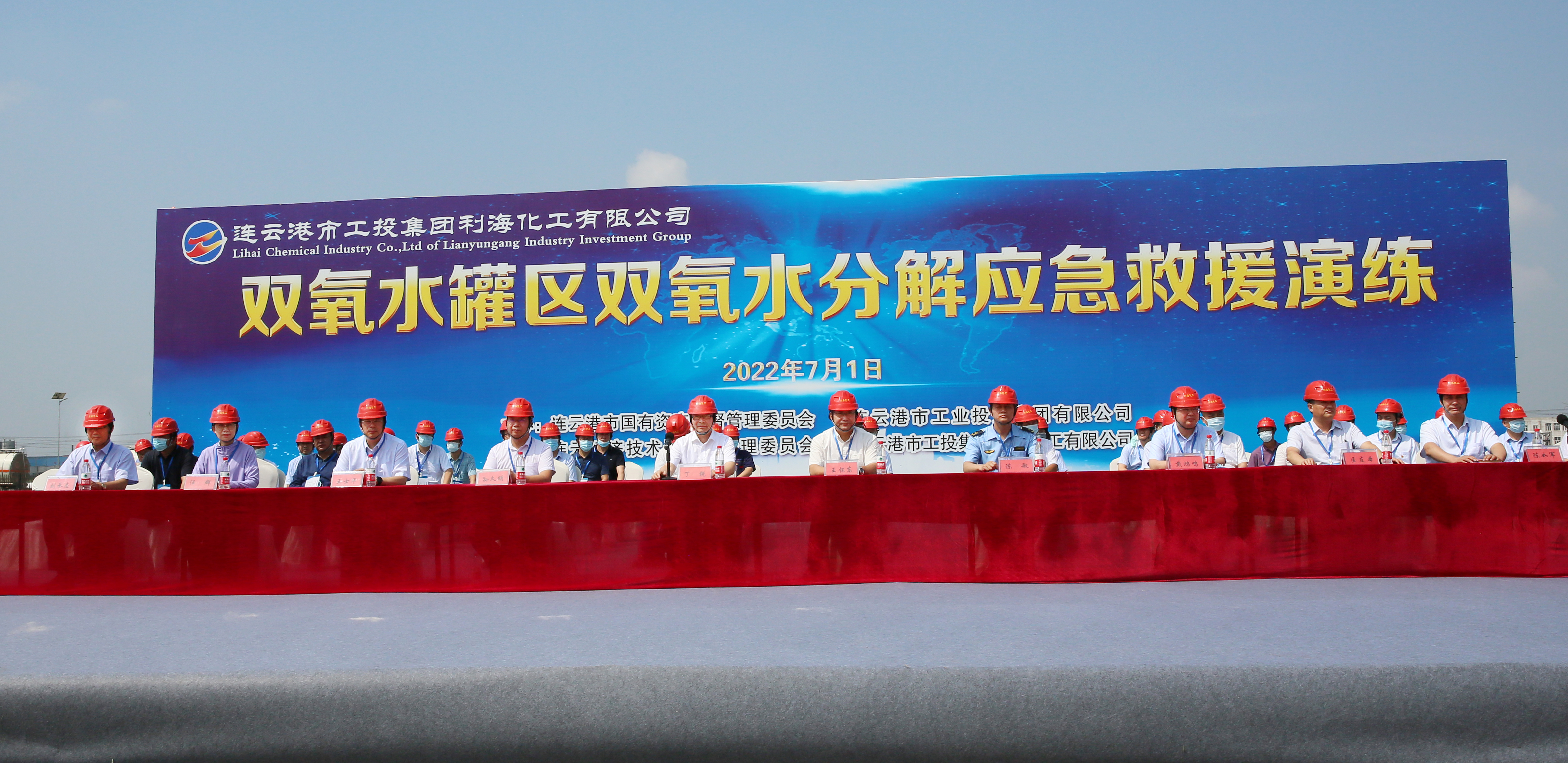 演练模拟利海化工公司双氧水成品罐区V0402A储罐内双氧水分解,罐体升温,可能发生爆炸事故,根据应急预案开展应急救援处置演练。经现场处置、启动公司应急预案、专业救援力量响应等程序,演练取得了圆满成功。