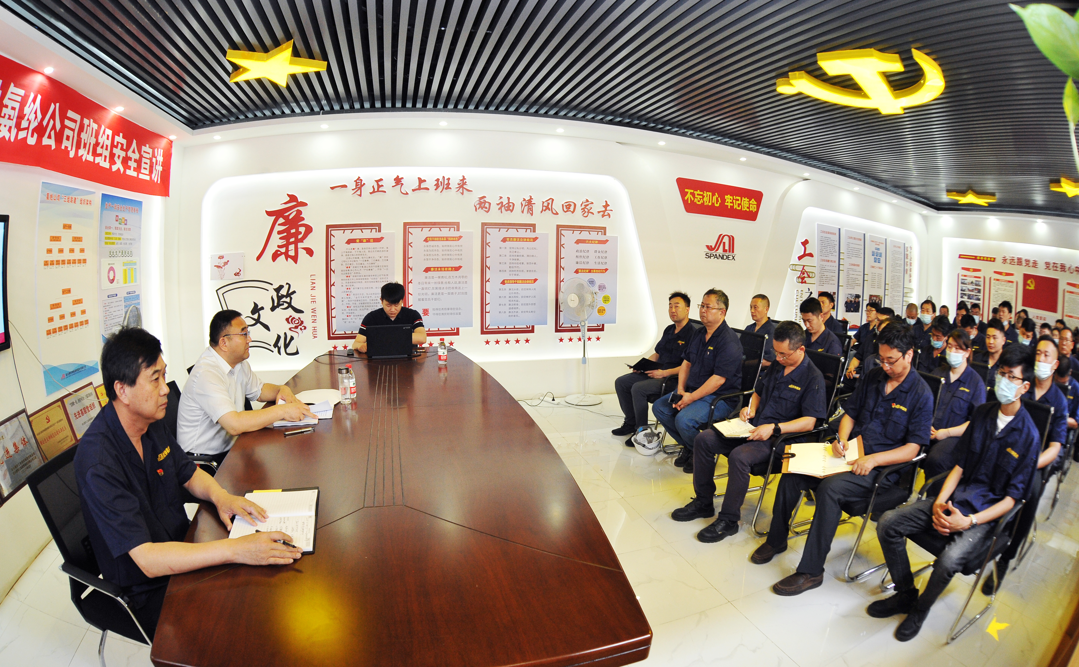 6月24日上午,云开平台公司党委书记、董事长杨龙深入氨纶公司生产一部班组开展安全宣讲活动。氨纶公司安全管理人员及班组长50多人参加。