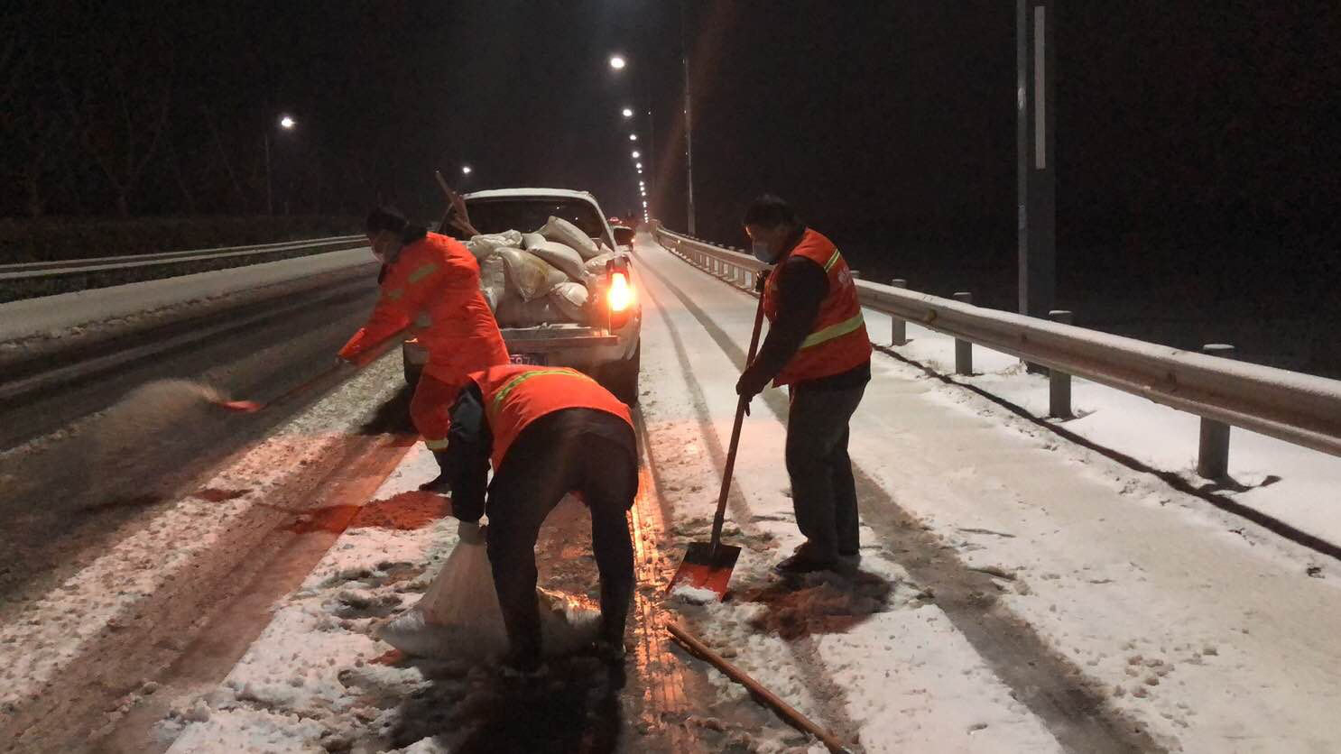 在开发区、徐圩新区、灌云临港产业区的各个区域,到处都是云开平台绿化保洁人的最美身影,他们在各单位党员先锋队、青年突击队的配合下,带上融雪剂和作业工具,发扬不怕艰苦、连续作战、敢打敢拼的工投精神,对交通要道、桥梁、弯道等重点防滑路段进行清雪防冻处理,铺洒融雪剂40余吨,为疫情防控期间车辆行人出行安全增添一份保障。