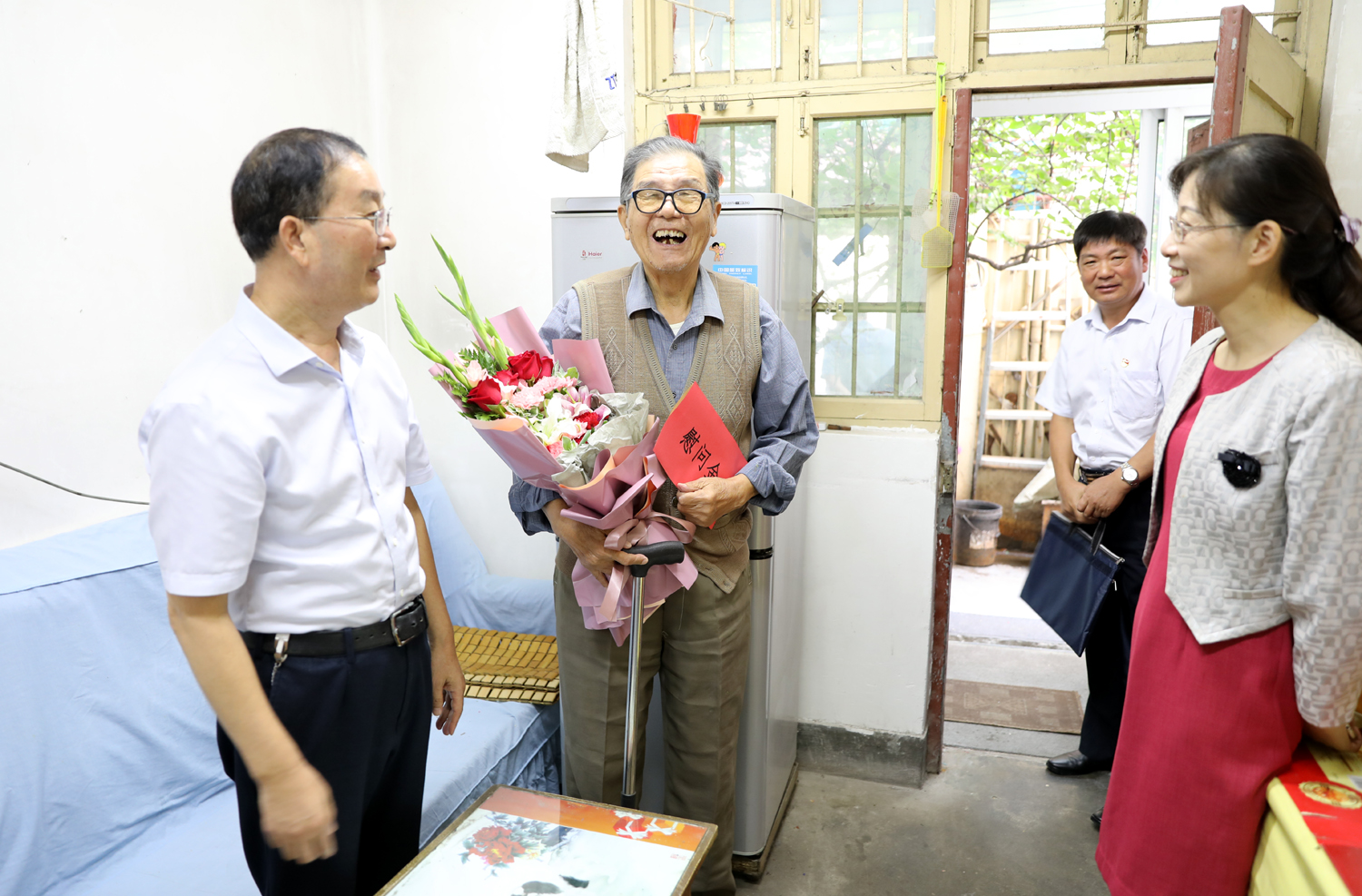国庆前夕,9月29日上午,云开平台公司董事长、党委书记杨龙,总经理胡建明、党委副书记戴鸿鸣、纪委书记汪群等领导分组走访慰问部分建国前参加工作的老党员、老干部,为他们送去慰问金和鲜花,同庆新中国七十周岁华诞。