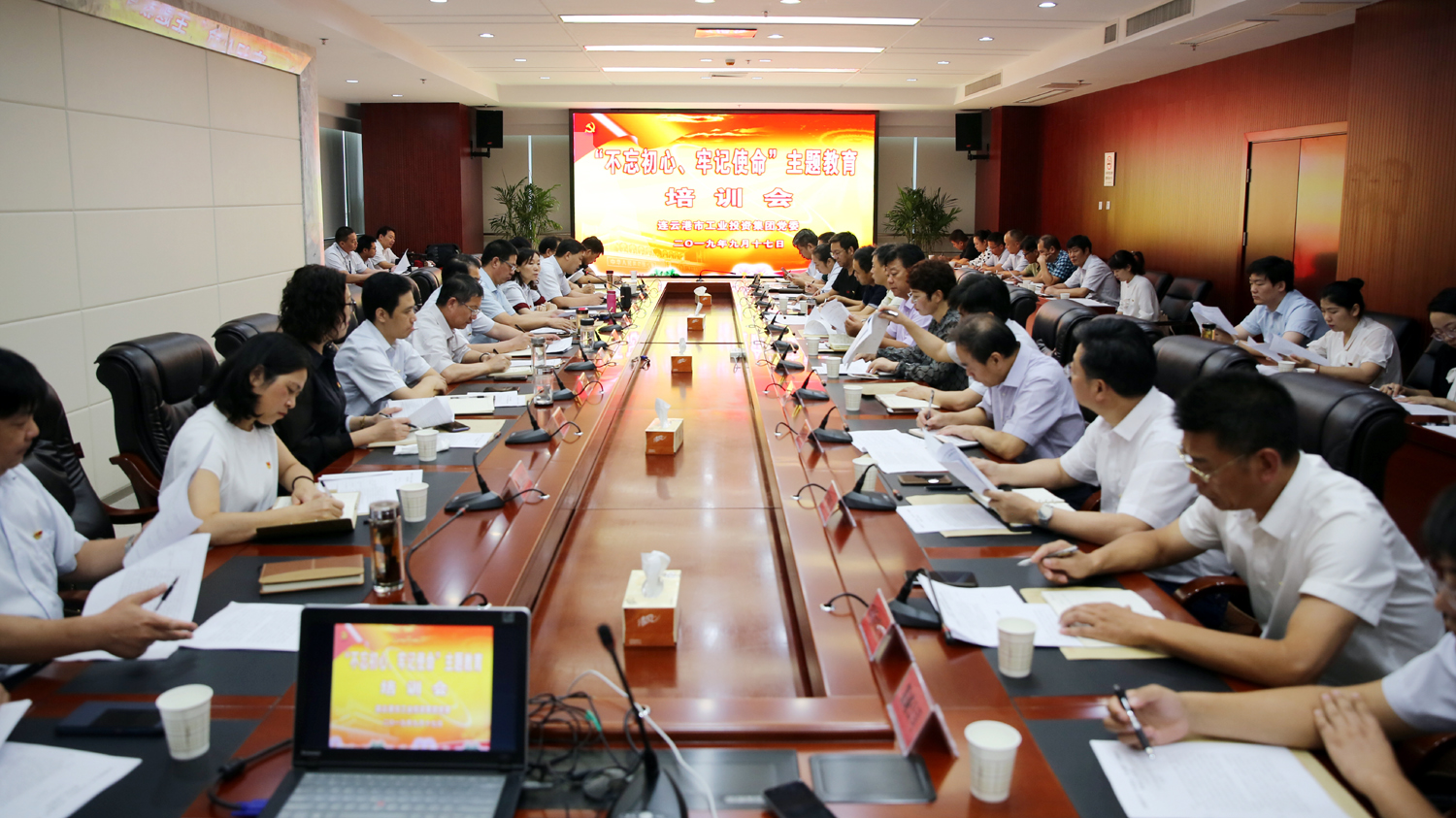 云开平台公司主题教育领导小组办公室、指导组全体人员,各直属党组织分管党建工作领导和党群工作部负责人参加培训会。