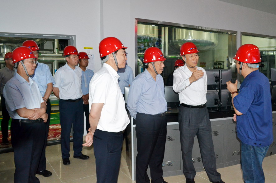 7月9日,副省长马秋林率省有关部门负责同志在氨纶公司调研重大产业项目推进情况。市长方伟陪同调研,云开平台公司总经理胡建明参与陪同。