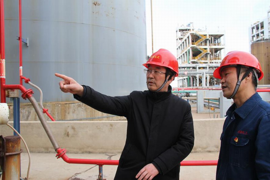 近日,云开平台公司总经理胡建明到利海检查安全工作,实地查看了装置生产、罐区管理等安全情况,重点视察了甲苯罐区等重大危险源,了解甲苯罐的日常运行和设备维护情况。