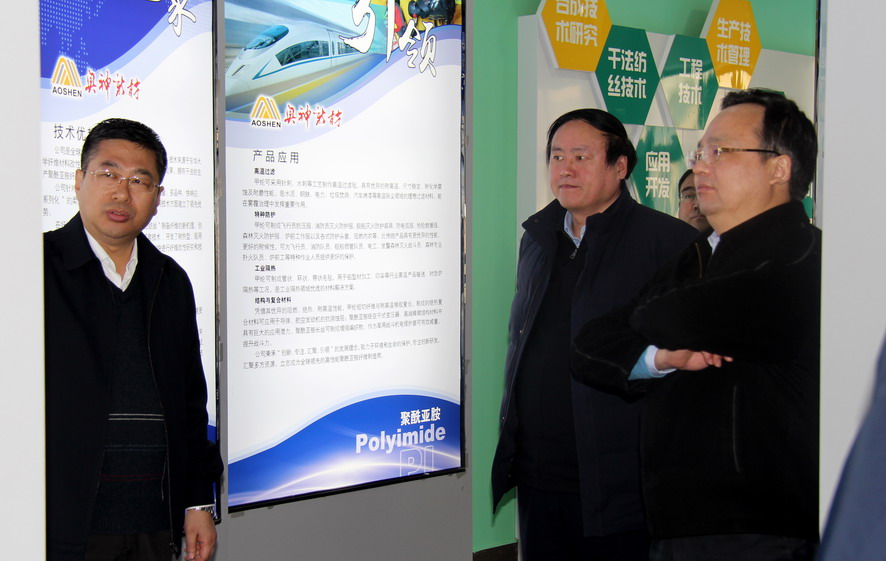 高清一行参观了奥神新材料公司产品展厅和生产线,仔细了解企业工艺技术、生产能力、市场拓展等方面情况。高清对公司产品创新、技术创新方面给予了肯定,指出要加大市场拓展力度,努力拓宽应用领域,为经济建设体现国有企业担当。并表示,可以与政府相关部门多沟通军民融合方面的产品开发,以提供更多产业投资和政策等方面的支持,促进国产高技术产业的发展。