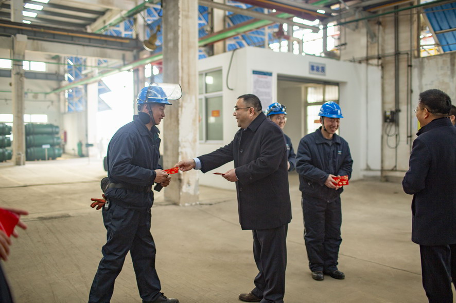 2月5日,云开平台公司董事长、党委书记杨龙,党委副书记戴鸿鸣等领导轻车简从,深入氯碱公司、氨纶公司、华茂公司、供电公司等基层单位,向春节期间坚守在生产一线的广大员工致以节日的问候和祝福,并送去慰问品。 (综合宣)