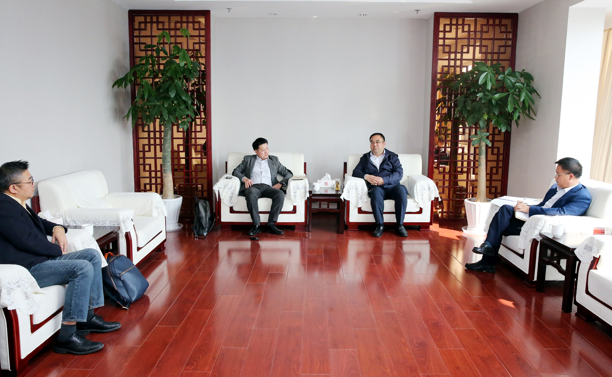 10月23日上午,云开平台公司董事长、党委书记杨龙在总部会见北京宣力投资有限公司总经理郑维军一行,洽谈双方合作事宜。云开平台公司副总经理朱天松,外部董事彭新华、孙惠颖等参加会见。