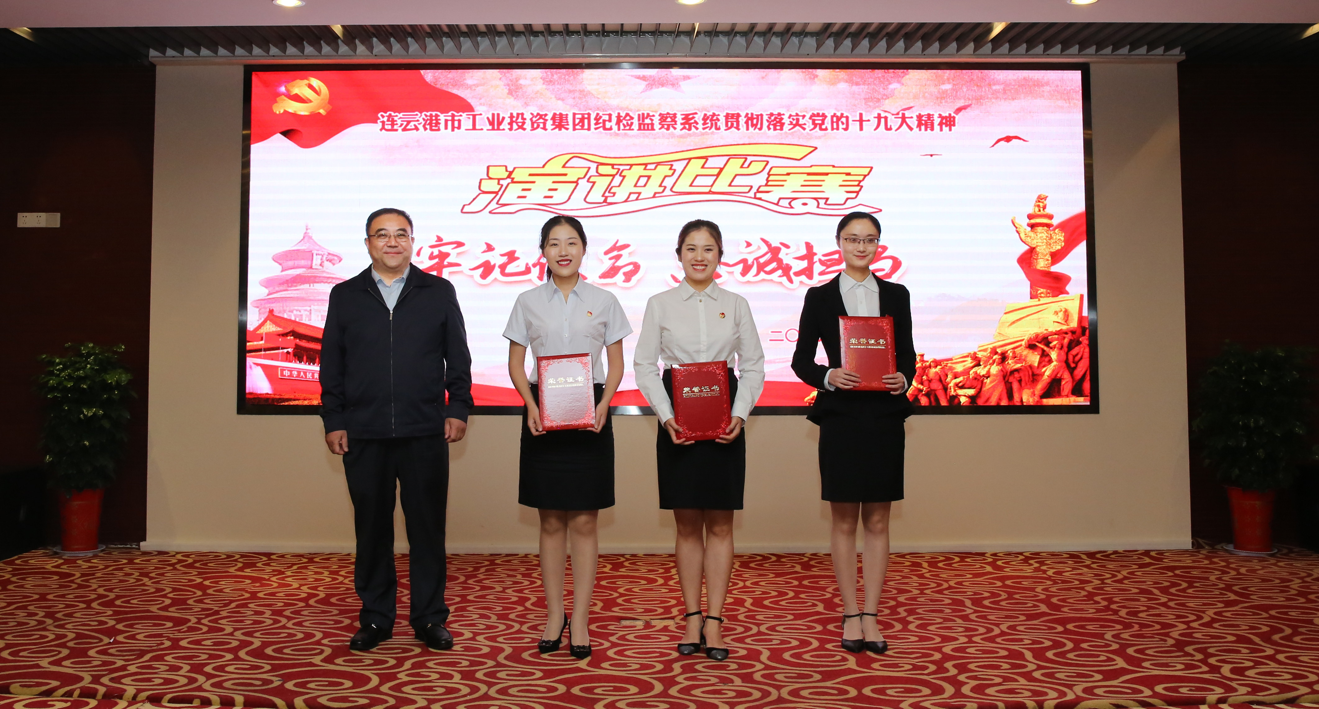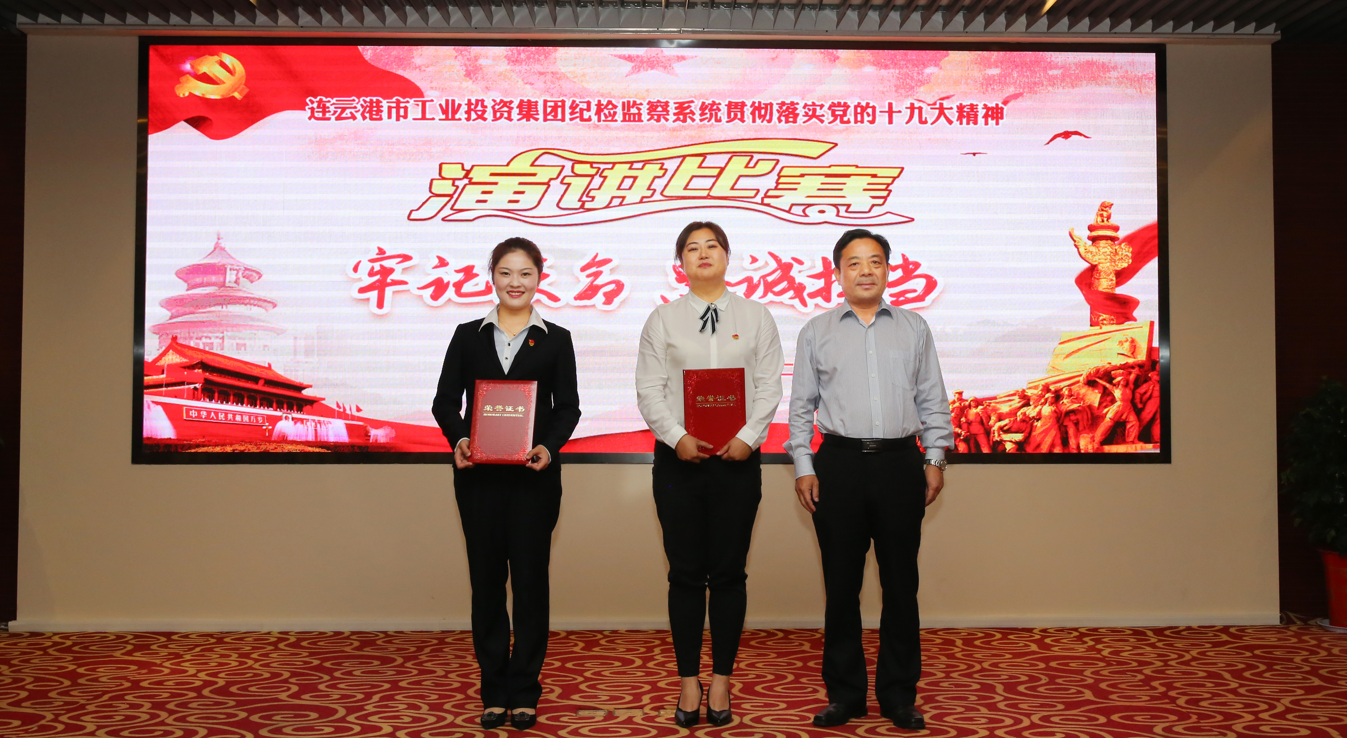 本次比赛得到市纪委、市委组织部、市委宣传部、市国资委的大力支持,市委宣传部副部长、文明办主任李超,市国资委副主任许峰、市纪委监委宣传部部长蒋颂华、市纪委监委第八纪检监察室主任梁浩、市委组织部机关干部处处长肖双、市委组织部青年干部处处长时凡、连云港市广播电视台主任播音员游雅玲担任本次比赛的评委。市纪委副书记、市监委副主任王奎杰到场观摩指导。