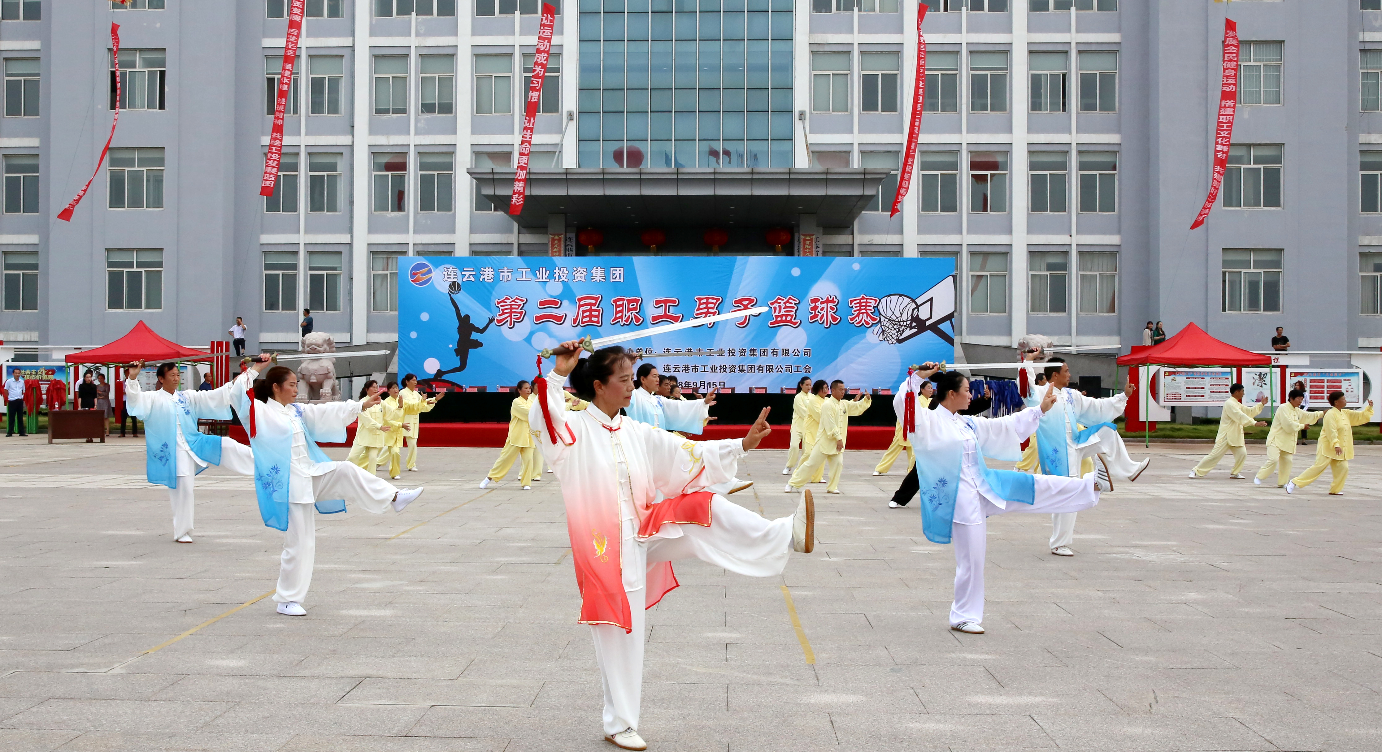 最后,杨龙宣布,连云港市工业投资云开平台第二届职工男子篮球赛开幕。一时间,整个会场沸腾起来,彩旗挥动,掌声、欢呼声经久不息。