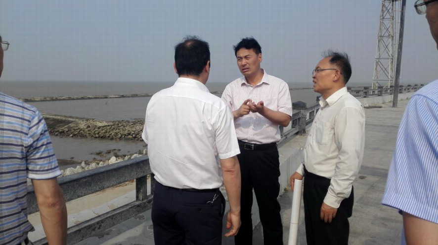 陈总先后来到七圩闸、新滩闸、六圩闸一一检查穿堤建筑物的安全。针对新滩闸等堤坡出现不同程度的破损,存在隐患的现状,陈总要求迅速采取措施进行应急修复,确保安全度汛。陈总一行还检查了宵洋码头、金桥产业园汛期工程施工的安全准备工作,对临时用电的规范管理提出了明确要求。