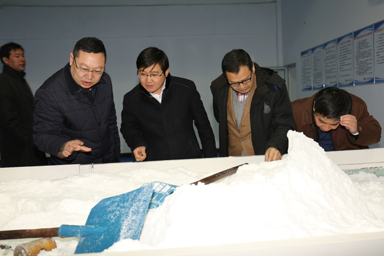 2月7日下午,江苏省盐业云开平台副总经理郑海龙一行在云开平台公司副总经理杨国新陪同下到金桥制盐公司调研考察。郑总一行先后参观了该公司雪花盐车间、加工盐车间、包装盐车间,对该公司生产环境、硬件设施、车间布局、生产工艺等给予了充分肯定。随后,双方围绕产品结构、价格调控、渠道建设等内容展开讨论,并就2018年的合作事宜进行了洽谈。
