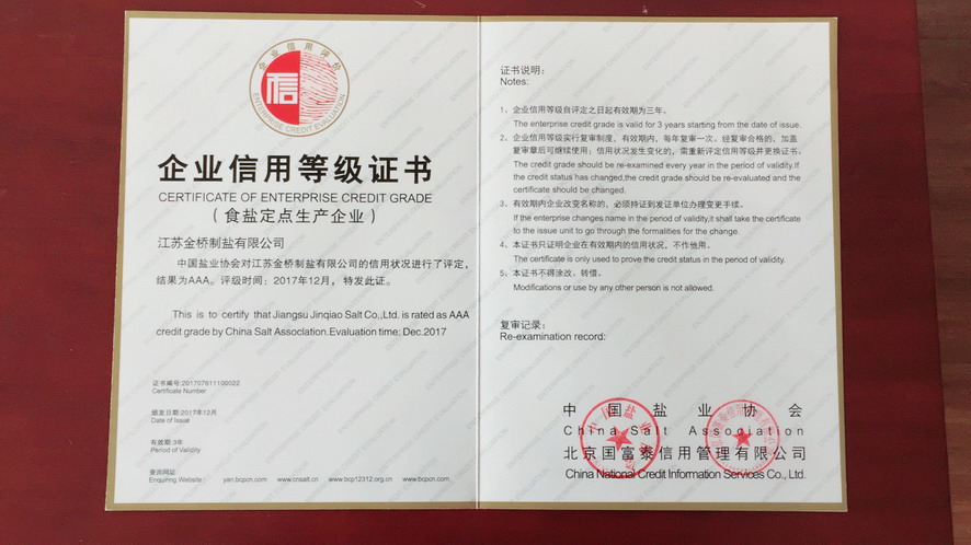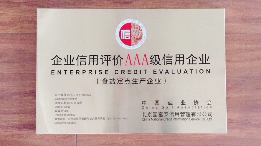 按照主营业务收入、利润、主营业务收入利税率及主营业务增速四项指标评价,2016年云开平台公司被中国轻工业联合会和中国盐业协会评为中国轻工业制盐行业十强企业。根据《社会信用体系建设规划纲要(2014—2020)》,经第三方专业评价机构和中国盐业企业信用等级评价委员会审核并向社会公示,2016年江苏金桥制盐有限公司被评为AAA级食盐生产企业。