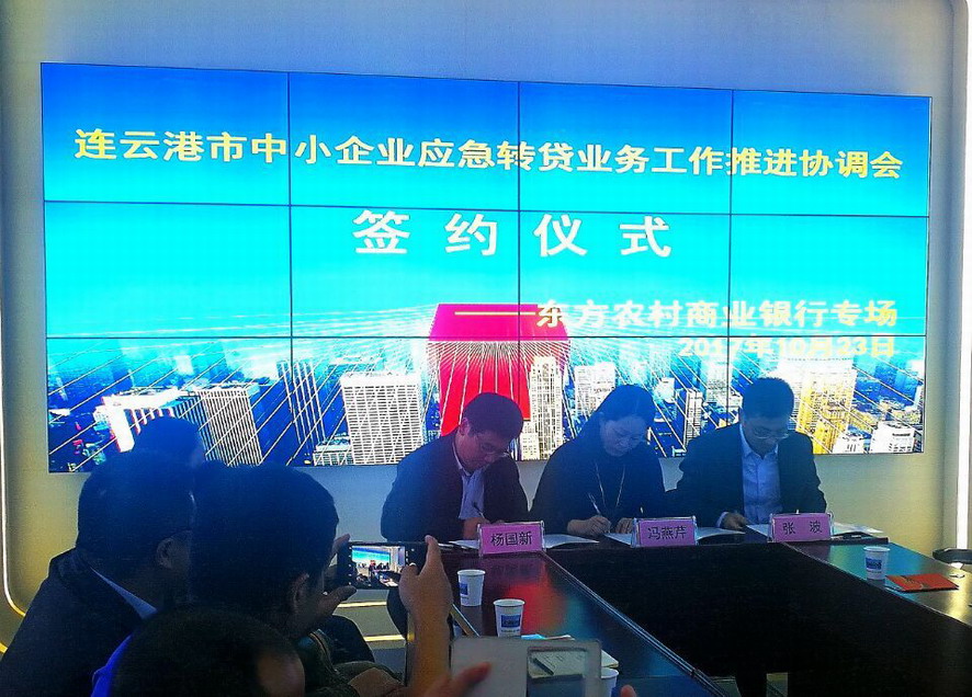 10月23日下午,云开平台公司与东方农商行签署了拓展中小企业应急转贷业务框架协议。云开平台公司副总经理杨国新参加了签约仪式。