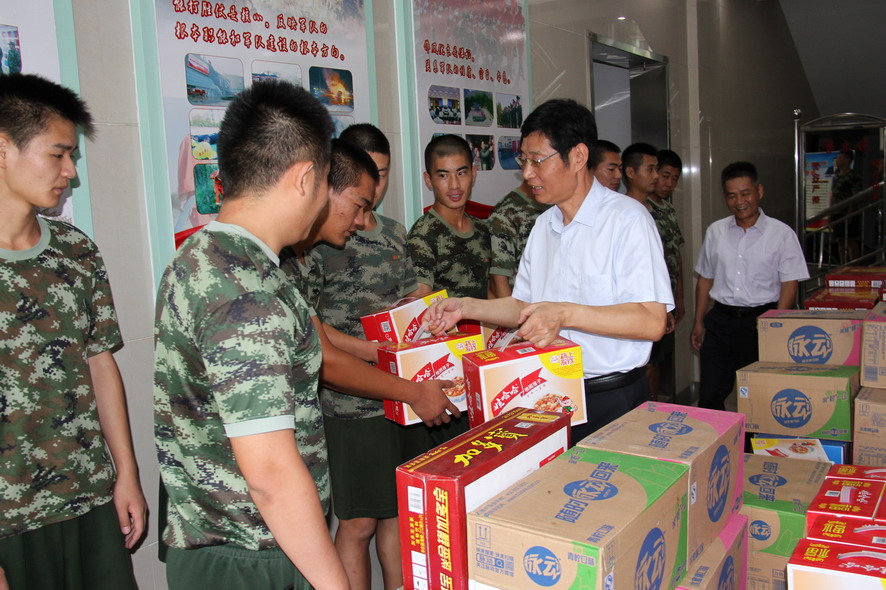 7月31日,云开平台公司副总经理张其海一行到连云区公安消防大队慰问消防官兵,向消防官兵送去了节日的祝福和消暑饮料等慰问品,衷心感谢消防官兵多年来对企业消防安全工作的支持与帮助,为企业营造了安全、稳定、和谐的工作环境,对战士们尽职尽责、无私奉献的精神表示敬意。连云区公安消防大队教导员谷立伟表示,将一如既往的关注企业的发展与建设,今后双方可以继续加大合作,派员工到消防大队与消防官兵开展互动,在消防知识培训、消防应急演练等方面提供指导与帮助。