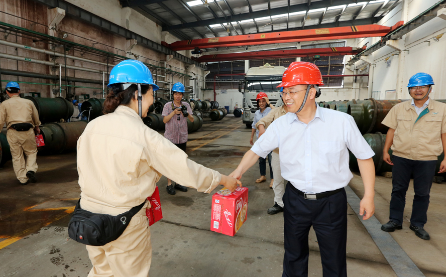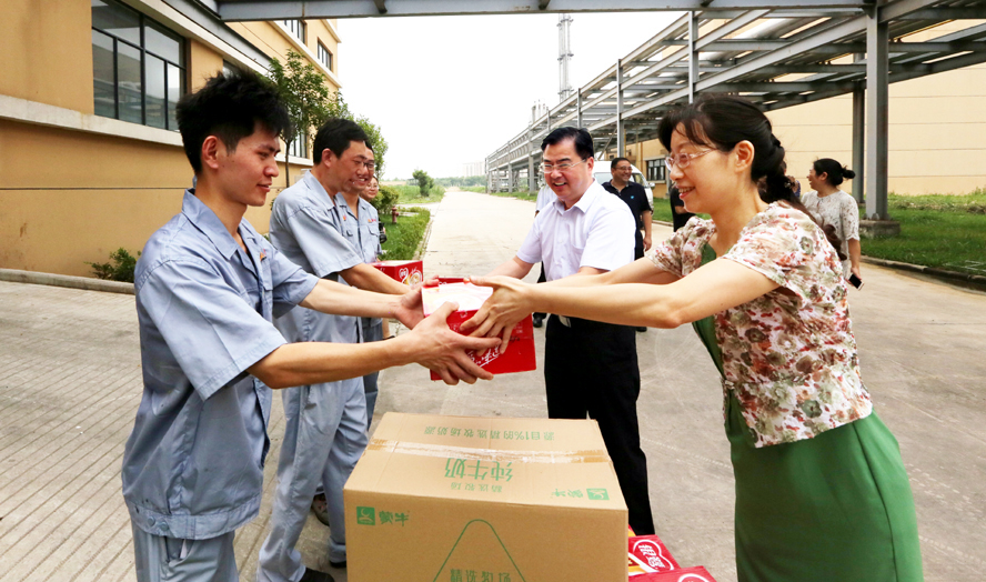 炎炎夏日送清凉,点滴关爱暖人心。连日来,骄阳似火,酷暑难耐。7月18-20日,云开平台公司领导杨龙、胡建明、张其海、朱天松、戴鸿鸣、汪群、匡友本等轻车简从,分赴基层一线,进车间、入工地、到滩(田)头,慰问在高温下坚守岗位的广大员工,送去绿豆、白糖等防暑降温品,在炎炎夏日中将“清凉”送到职工心坎上。