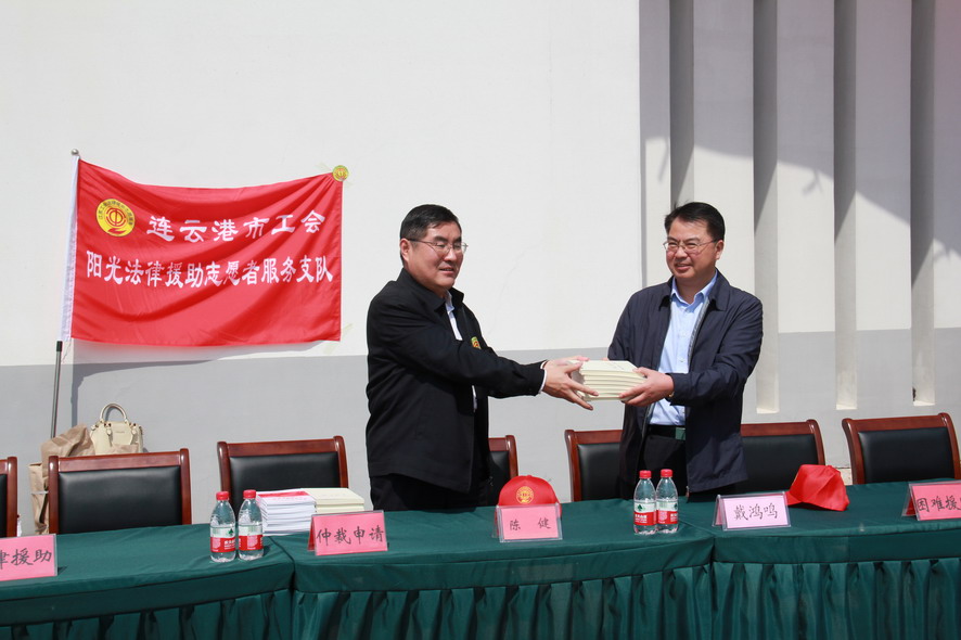 5月10日上午,受省总工会委托,连云港市总工会副主席陈健、法工部部长易怀丽和市法律援助志愿者一行15人,在云开平台公司工会主席戴鸿鸣、副主席卢同根等陪同下,来到工投云开平台华茂绿化工程公司,开展省市工会阳光法律援助志愿服务走基层“送法进企业”活动。来自工投云开平台及社会各界人士200余人参加了活动。