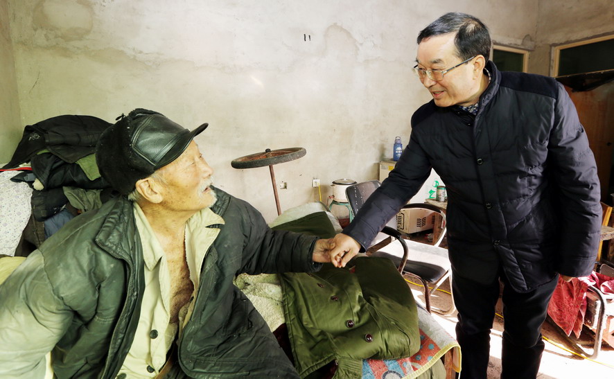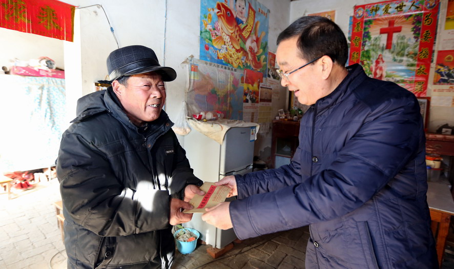 1月20日上午,云开平台公司总经理胡建明代表云开平台党委专门来到对口扶贫点,赣榆区沙河镇北朱果村走访慰问贫困户。在沙河镇人大主席曹军华的陪同下,胡建明共看望了十户贫困户,每到一家,都关切地询问他们生产生活状况和遇到的困难,勉励他们坚定信心,树立战胜困难的勇气,并为他们送去慰问金和节日的祝福。