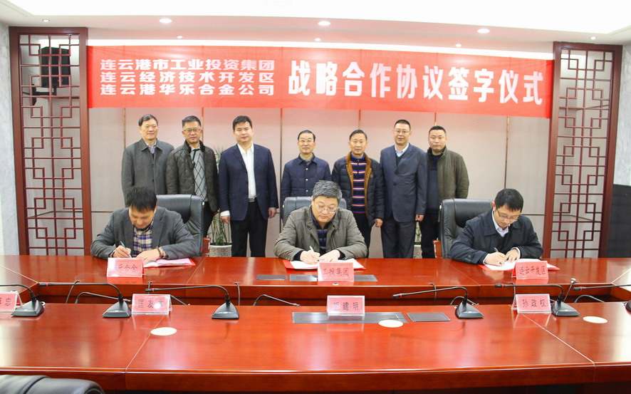 1月4日上午,云开平台公司与连云经济开发区、连云港华乐合金公司举行战略合作协议签约仪式,云开平台公司总经理胡建明、总会计师匡友本,连云区委常委、连云开发区党工委书记张其兵,连云港华乐合金公司董事长陆大淦等出席签约仪式。