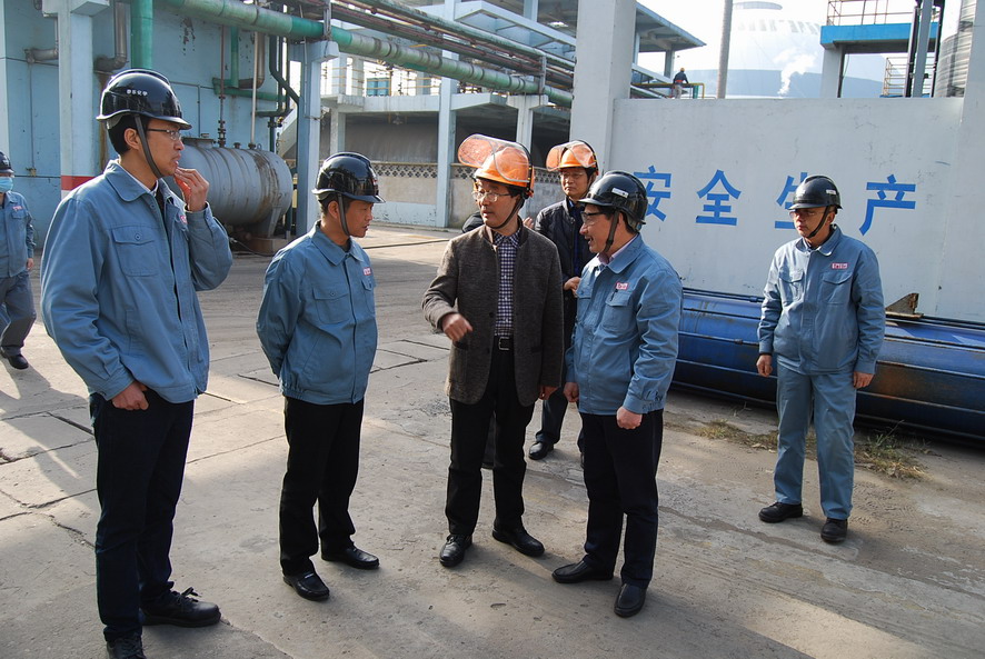 胡总听取了泰乐化工公司安全生产管理情况汇报,在详细询问了职工的思想稳定及安全管理状况以后,胡总一行直接来到重大危险源点——3只50立方液氯储罐区和中央控制室检查了解安全防护措施和危险源的监控情况。