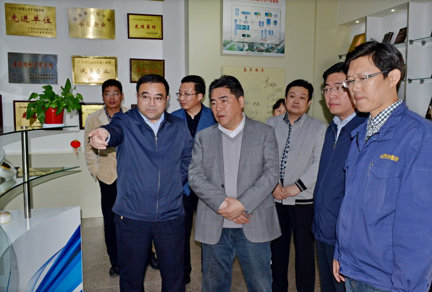 11月3日下午,市长项雪龙,市委常委、开发区党工委书记曹卫东一行到氨纶公司实地调研项目建设情况。云开平台公司董事长、党委书记杨龙陪同调研。