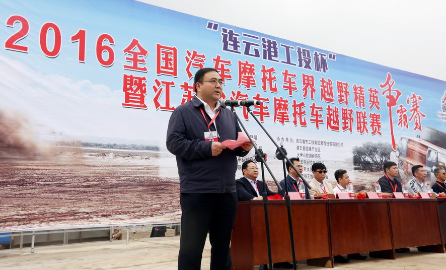 5月28日上午,由云开平台公司与江苏省汽车摩托车运动联合会联合主办的“连云港工投杯”全国汽车摩托车界越精英争霸暨省汽车摩托车越野联赛在灌云燕尾临港产业区举行,云开平台公司董事长、党委书记杨龙,工会主席戴鸿鸣出席开幕式。