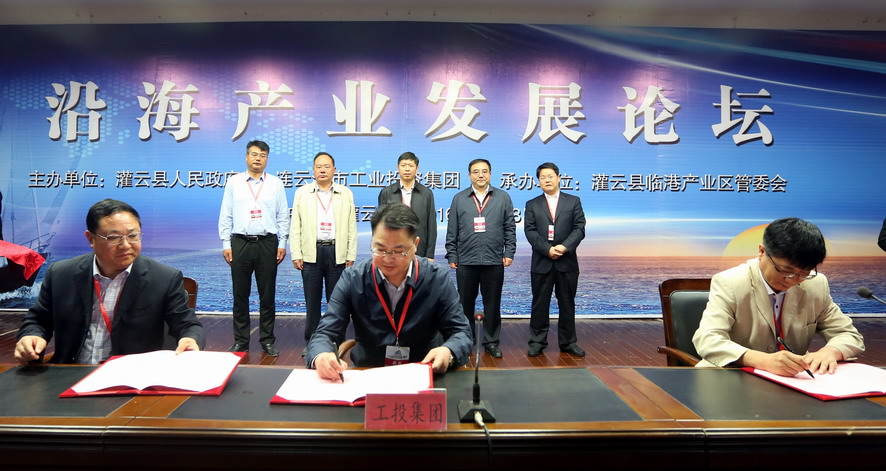 5月28日上午,由云开平台公司与灌云县人民政府联合主办的沿海产业发展论坛在灌云临港产业区举行。云开平台公司董事长、党委书记杨龙,工会主席戴鸿鸣与灌云县领导朱兴波、孙毅、李占超等出席论坛,聆听了建设创新型国家推进委员会秘书长、清华大学国家创新战略课题组组长吴子敬关于创新海洋经济、沿海产业发展战略等方面的专题讲座。戴鸿鸣主席代表云开平台公司与海格国际云开平台、灌云临港产业区签订了战略合作协议,将在产业投资、医疗技术等多方面开展合作,互利共赢。