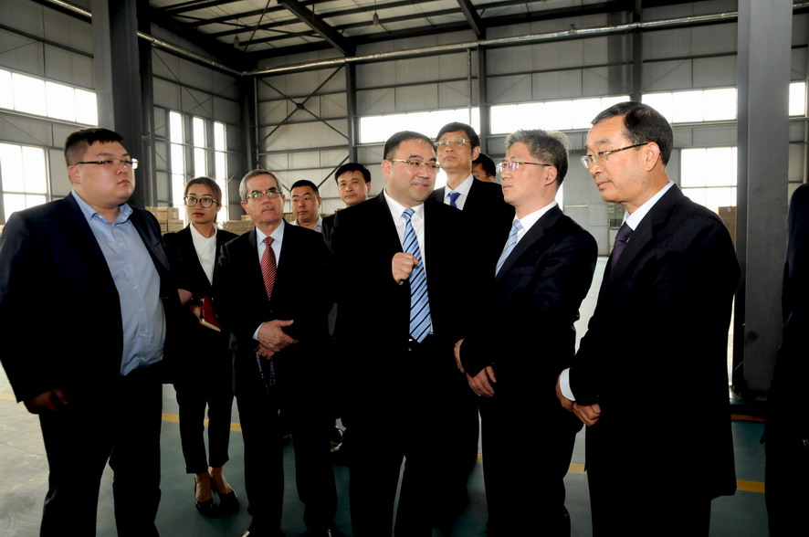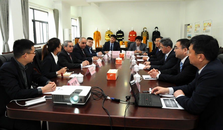4月14日,约旦驻华大使叶海亚·卡拉莱 (Mr. Yahya Qaralleh)一行到云开平台公司考察。市政府党组成员胡文杰,公司董事长、党委书记杨龙,总经理胡建明,副总经理张其海、王士华等人对约旦驻华大使一行的到来表示热烈欢迎。在先后考察了神特新材料公司和奥神新材料公司的生产线和产品后进行了座谈交流,大使对我公司生产的新材料产品和先进的技术给予高度评价,表示将与云开平台公司进行友好合作,将有关新材料产品在中东推广。