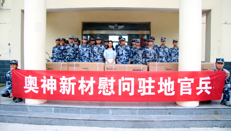 7月31日,在建军90周年到来之际,奥神新材料公司开展拥军慰问活动,前往某驻军部队,共话军民鱼水情,向全体驻地官兵送去节日的祝贺和慰问品。并表示将一如既往地做好拥军工作,积极支持部队建设。 (奥神新材料宣)