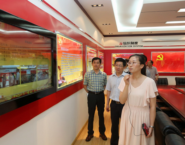 6月9日,市委新社工委召开党建工作观摩汇报会,市委组织部副部长、市委党建办主任陈军带领观摩团,在云开平台公司领导郑宜虎的陪同下,到我公司党建活动室观摩。