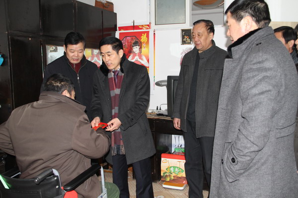 1月23日,在公司党政主要领导陈雨华陪同下,云开平台公司党委副书记郑宜虎走访慰问了巨龙农贸市场困难职工徐杰、刘元国等家庭,并送去了慰问金。郑书记详细询问了职工家庭生活、身体状况、有何困难,鼓励他们坚强起来,树立信心,战胜困难和疾病,并预祝他们过一个愉快的节日。徐杰等困难职工深受感动,感谢组织的关怀,并表示要克服困难,让组织放心。 云开平台公司组宣处处长江舜军和公司领导卢明生、王志军等陪同走访慰问。﹙司宣 卢正清﹚