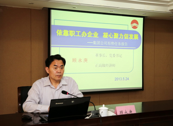 5月24日下午,云开平台公司董事长、党委书记顾永庚在公司淮盐大酒店会议室作了以“依靠职工办企业,凝心聚力促发展”为主题的形势任务教育报告。报告会由公司党委书记、总经理范益宝主持。供电工程公司和供销总公司全体管理人员聆听了报告。 云开平台公司党委副书记郑宜虎、工会主席戴鸿鸣出席会议。