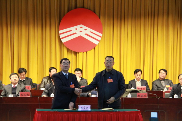 在云开平台公司四届五次职代会上,范总和云开平台公司总经理胡建明签订了2013年供电工程公司经济责任书。在随即的表态发言中,范总提出,2013年,我们供电工程公司要力争实现营业收入1.3亿元、综合利润突破4000万元、职工人均收入达6万元,赢得了热烈掌声。