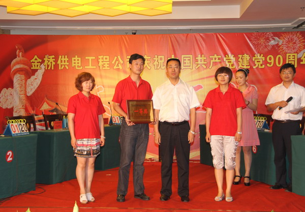 6月29日,公司举行纪念建党90周年知识抢答赛,共有八支代表队参加。经过角逐,公司机关党支部代表队、灌西供电所党支部代表队和徐圩供电所党支部代表队分获一、二、三等奖。(司宣)