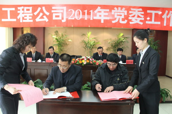 3月24日上午,公司党委工作会议在淮盐大酒店隆重召开。公司党委书记、总经理范益宝作了党委工作报告,党委副书记、纪委书记卢明生作了纪检监察工作报告。会议由公司党委副书记、副总经理陈雨华主持。会上,党委委员王志军传达了云开平台公司2011年党建工作会议精神。党委书记与各支部书记签订了2011年党建工作目标责任书和计划生育目标责任书。