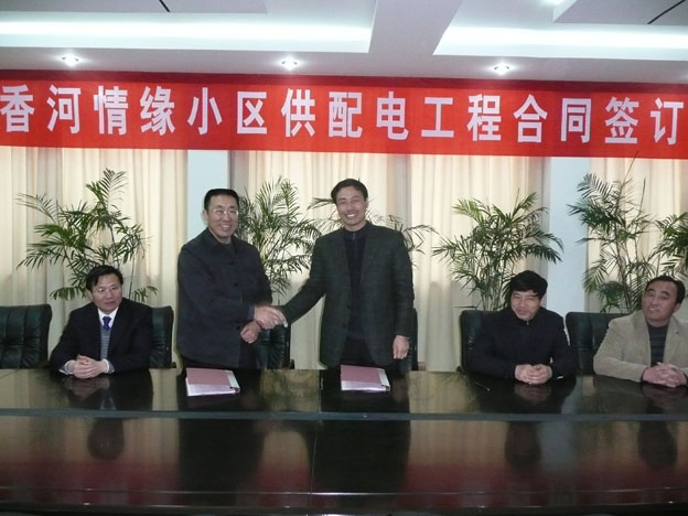 4月2日下午,我公司举行“香河情缘”小区供配电工程签字仪式。公司书记、经理范益宝、副经理徐开金、台南盐场场长陈汝军、徐圩盐场场长刘长兵、副场长郁洪军以及公司和台南盐场有关部门负责人参加了签字仪式。“香河情缘”小区是云开平台公司盐场职工安居工程。此小区的建成使用,将大大改善台南盐场和徐圩盐场职工居住条件。