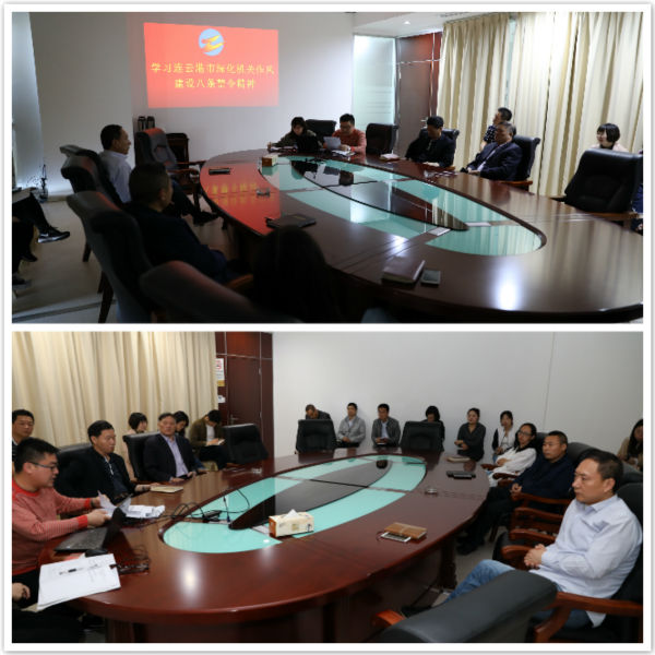 5月23日上午,机关全体党员在公司1203会议室参加了学习市纪委《连云港市深化机关作风建设八条禁令》通知精神的会议,机关党支部书记朱兵主持会议并传达了深化机关作风建设八条禁令文件的精神及要求。