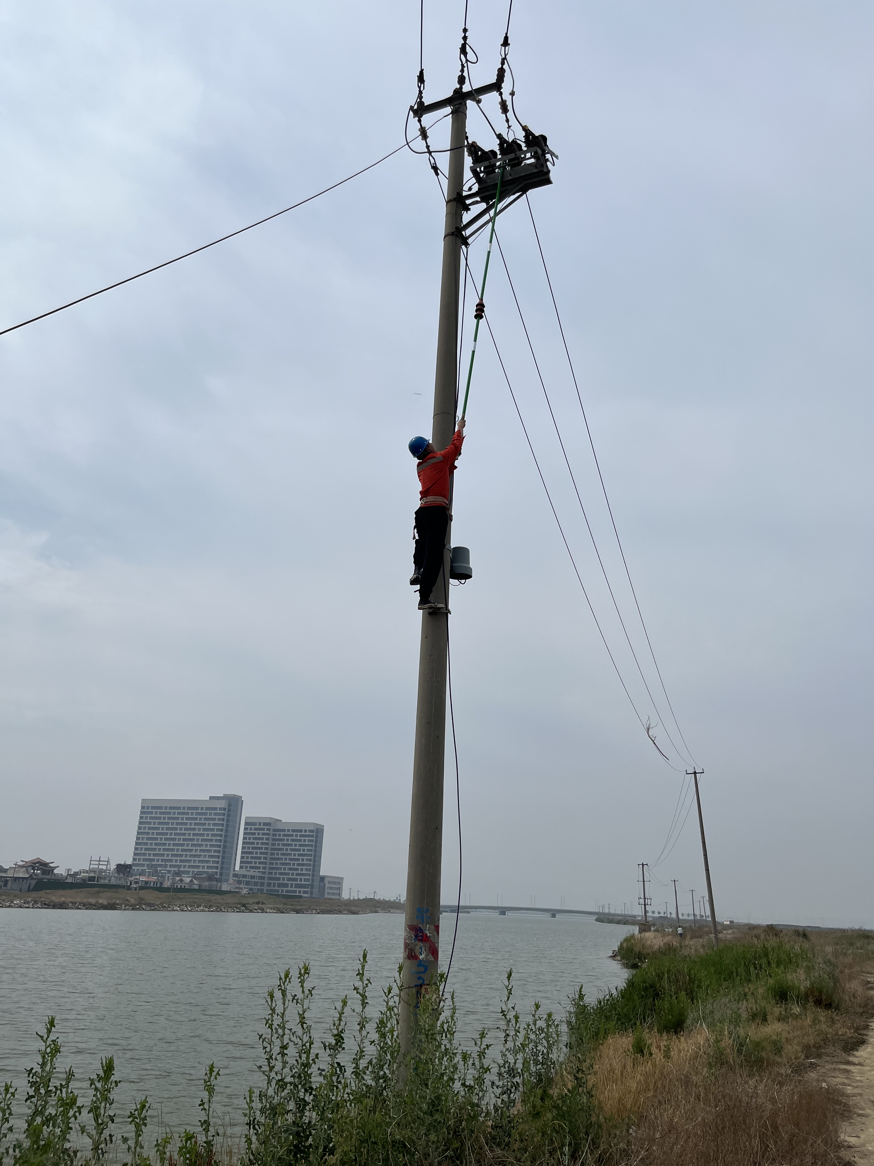 突如其来的雷暴恶劣天气导致维保单位金海岸公司部分线路发生断线事故,电力设施遭到破坏,恶劣天气给维保单位的电网安全可靠供电带来极大威胁,一场电网抢修保卫战在暴风雨夜中打响……故障就是命令,接到抢修命令后,抢修人员迅速对故障线路进行巡视排查,夜间光线差,气温骤降十几度,大风夹杂着雨滴、沙尘、落叶不时地抽打着抢修人员的脸颊,为了及时找到故障点,抢修人员与时间赛跑,克服面临的种种困难,合理分工,冒雨顶风对故障线路逐级进行认真排查。经过 工作人员不懈努力,故障点被发现并完成修理,顾不上休息,工程营销部巡视人员便又投身事故抢修中去,清理树障、更换瓷瓶、紧固导线……工程营销部 郑皓