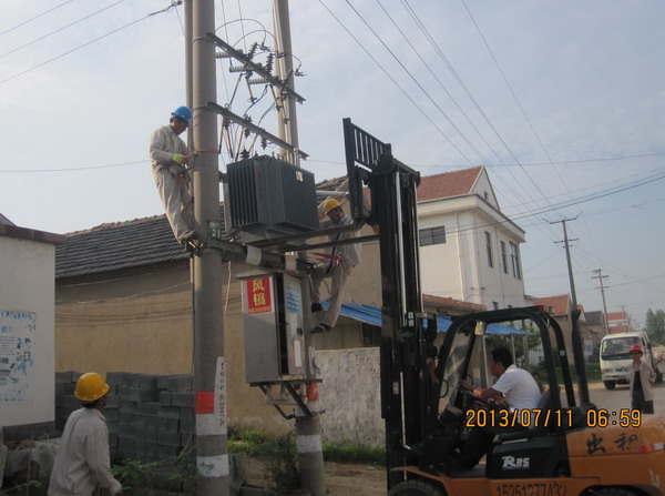 近日,持续高温,青口供电所为使居民增容变压器尽快地按装到位,早上六点钟就上班,克服人员少、天气热等困难,加班加点安装增容变压器。(宋中文)