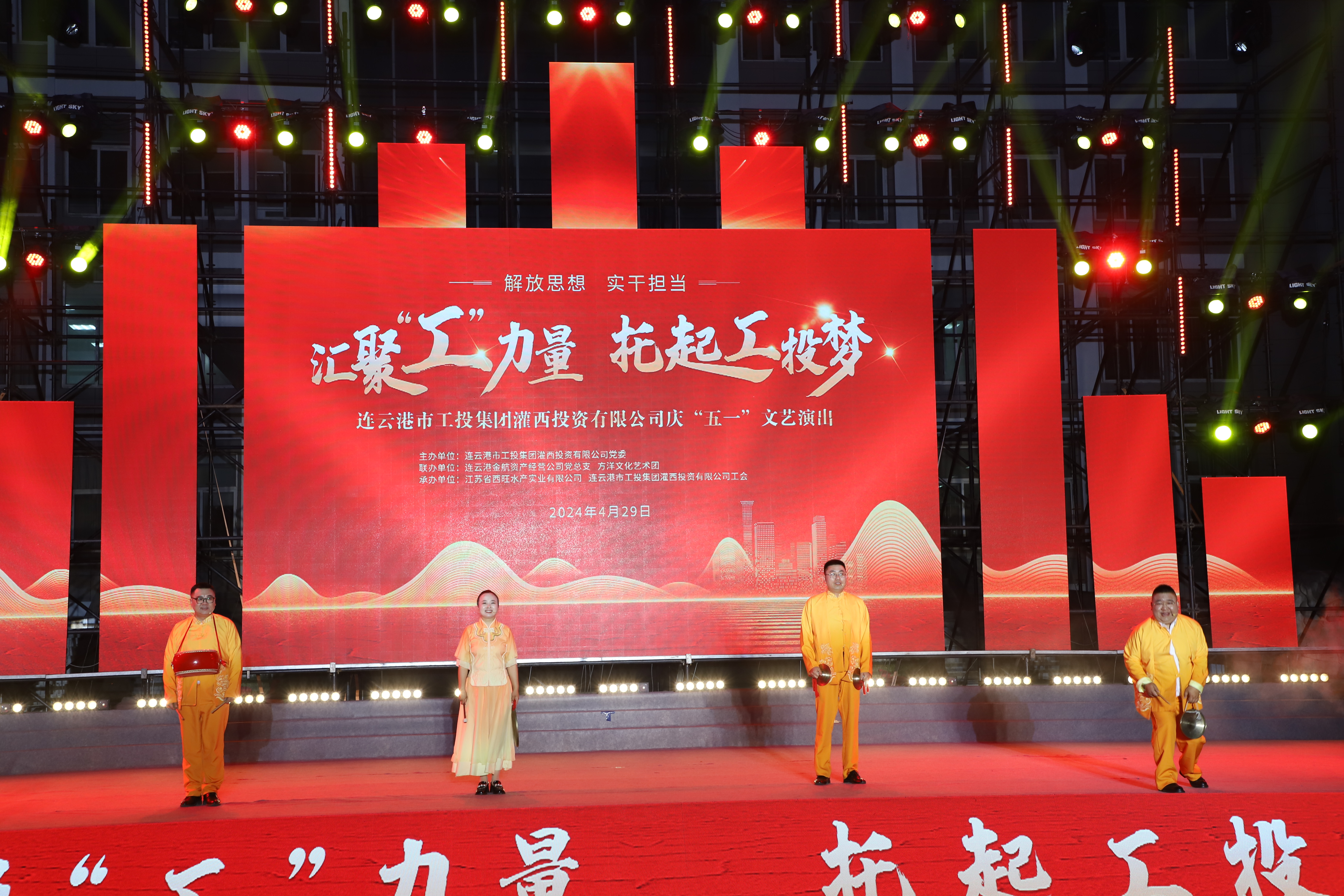 4月29日晚,灌西投资公司《汇聚“工”力量,托起工投梦》庆“五一”文艺演出在机关大楼前广场举行。本次活动由灌西投资公司党委主办,连云港金航资产经营公司党总支、方洋文化艺术团联办,旨在通过艺术的形式,营造崇尚劳模、学习先进、尊重劳动的良好氛围,丰富公司员工的文化生活,激发干事创业热情。云开平台公司领导张六林、戴鸿鸣、汪群及部分部门负责人,灌西、金航资产经营公司领导班子成员出席演出活动,县临港产业区管委会、华能灌云清洁能源发电责任有限公司、徐圩新区方洋云开平台等有关领导受邀观看演出。