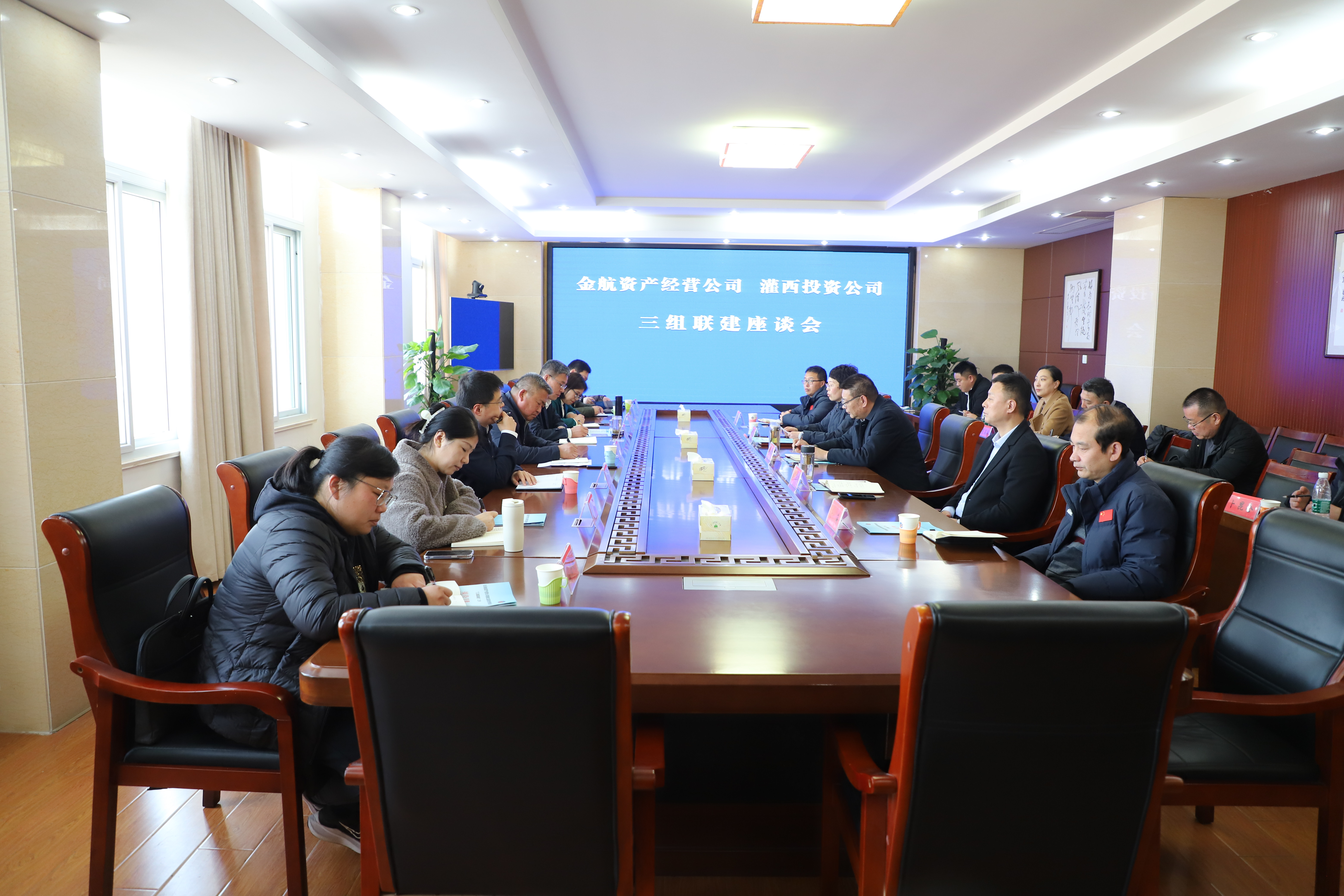 3月21日,连云港金航资产经营公司党总支书记、董事长、总经理庄清付等一行人员来灌西公司观摩交流三组联建工作,公司党委书记、董事长孙政权、党委副书记、总经理吴卫平、党委副书记、工会主席王宏陪同观摩交流。