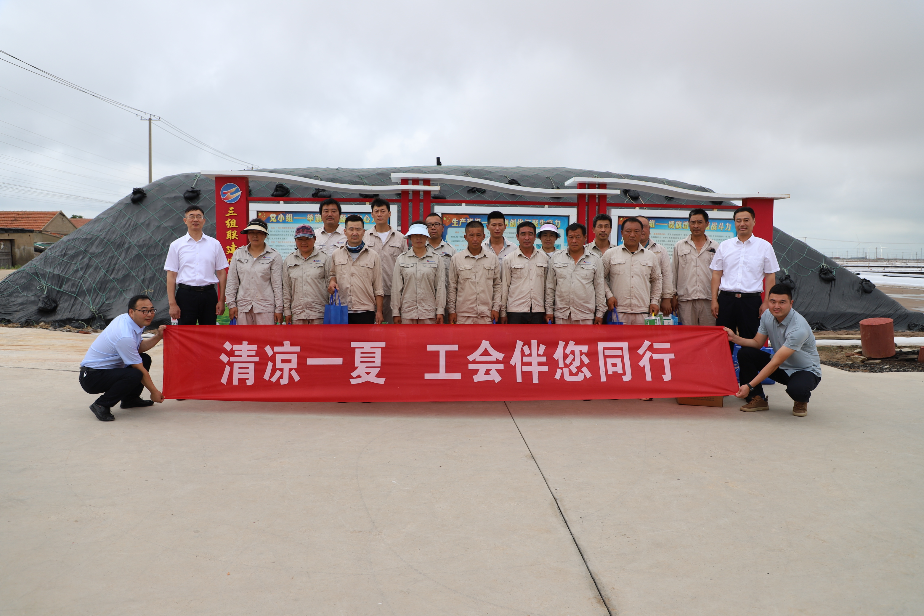 “高温天气,大伙儿一定要注意劳逸结合。”“感谢大家的辛勤付出,这些防暑物品仅是我们的一点心意。”张六林一行来到日晒制盐新河分公司八班滩头,为他们送去绿豆、白糖等慰问品。一声问候、几句家常,缓解了盐工们的疲惫,让他们感受到了实实在在的温暖。