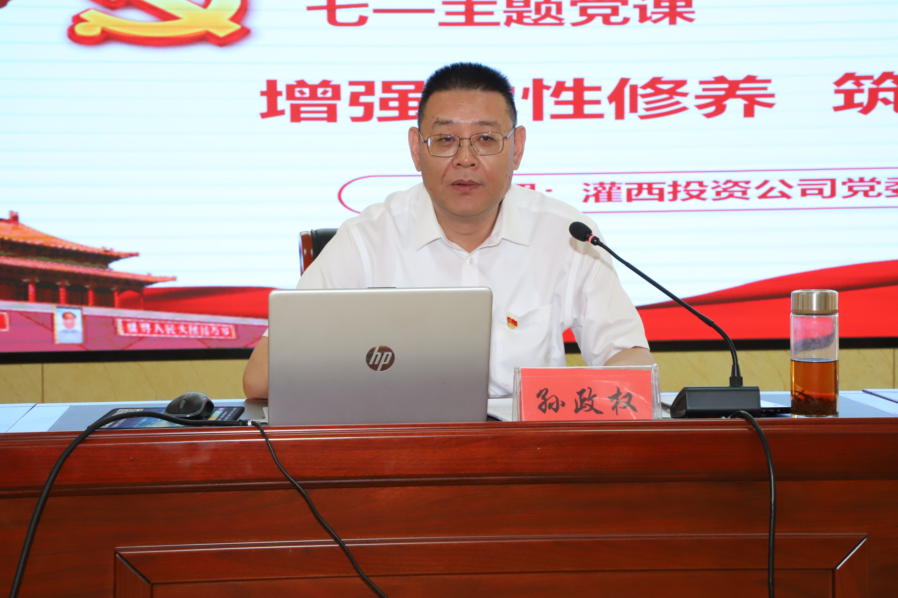为深入学习贯彻党的二十大精神,热烈庆祝中国共产党成立102周年,6月30日上午,灌西投资公司党委举办庆祝建党102周年专题党课暨表彰大会,公司领导班子成员、各单位副职级以上党员、机关全体党员、预备党员、受表彰人员及特邀华能热电公司党员参加会议,公司党委副书记、工会主席王宏主持会议。