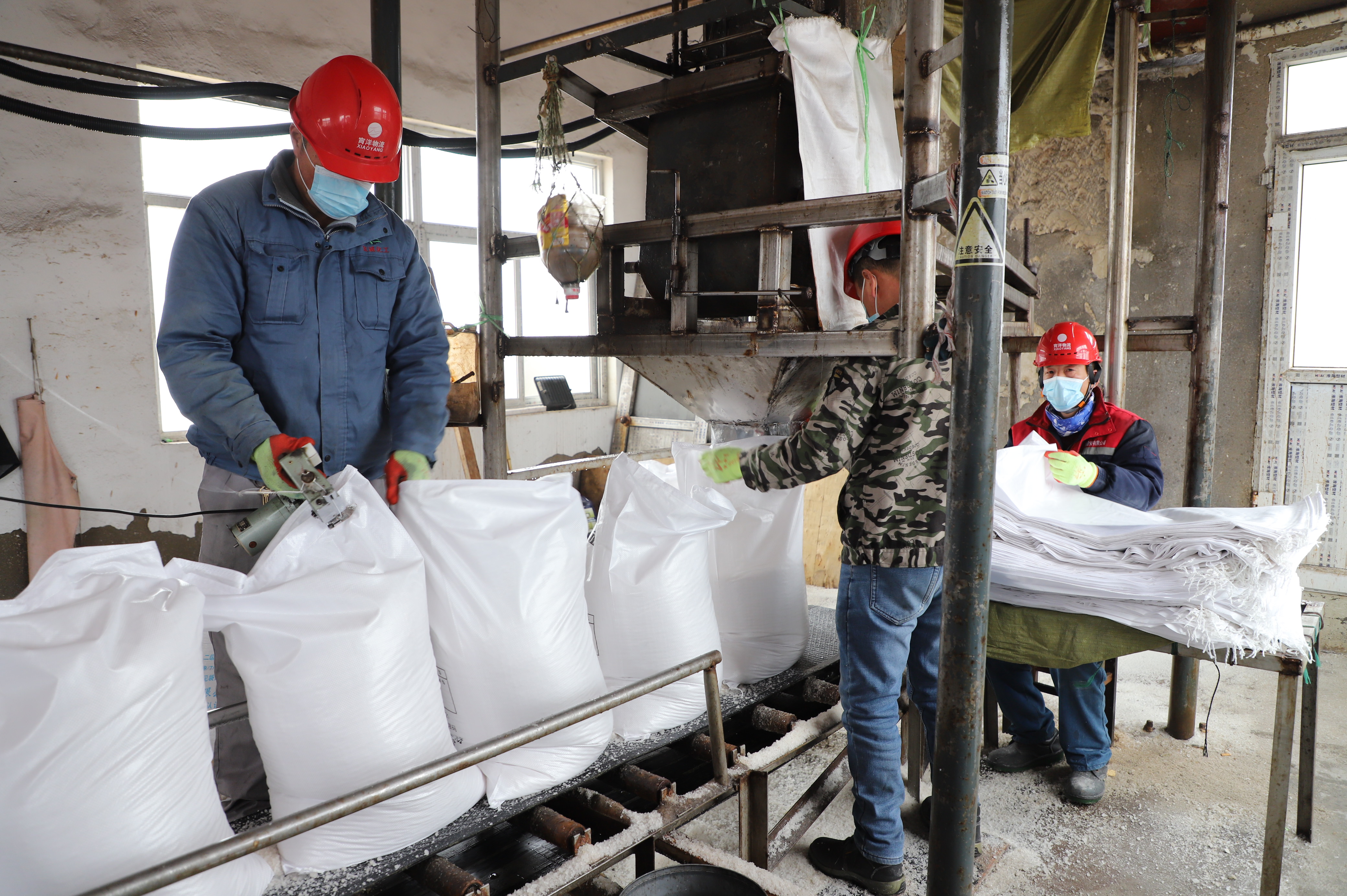 宵洋物流公司筑包基地是一个专门从事散盐包装的作业班组,现有8名员工。该班组曾多次获得公司“优秀班组”、“安全生产先进班组”等多项荣誉称号。2022年,完成筑包量达4.3万吨。