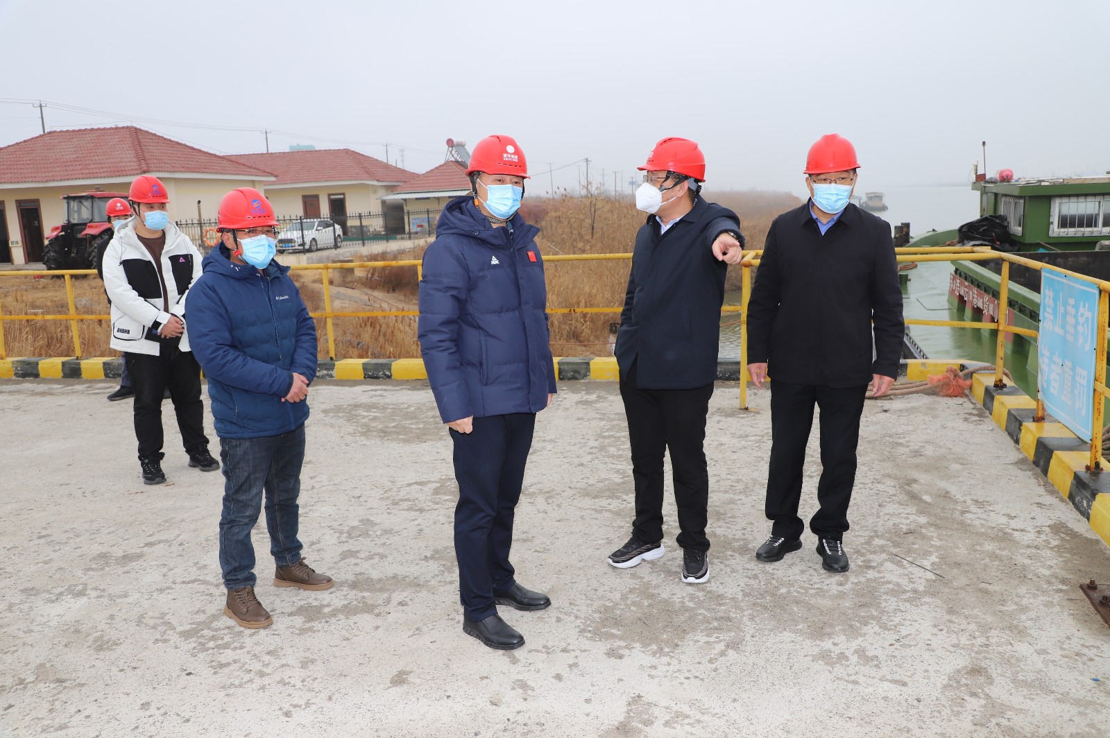 匡友本、刘承志一行先后查看了码头及筑包基地生产现场,对其货运物流、消防安全、用电安全和冬季防寒防冻等安全管理工作进行了检查。
