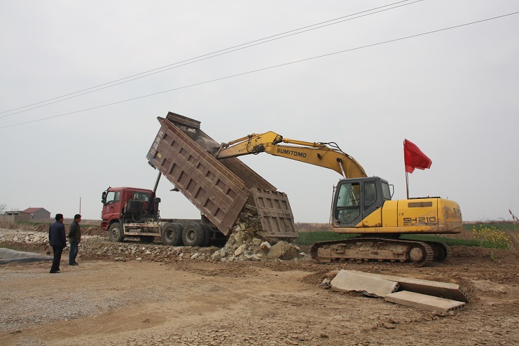 4月5日,在埒南制盐分公司十四班运盐路施工现场,我们看到大型工程车正在将一车车石料倾倒在路基上,一台挖掘机正忙于将运送来的土夹石整平。据了解,此次铺设的运盐道路主要是为了解决埒南制盐分公司十四、十五两个班的原盐运输问题。由于临港产业区已经建成的石化路最北端只能够到达十三班,而原有的运盐道路又无法满足生产需求,交通不便已经严重影响了这两个班原盐运输工作。为了解决这一难题,公司在经过前期调研,并报云开平台公司批准后,于近日开始实施道路建设工程。