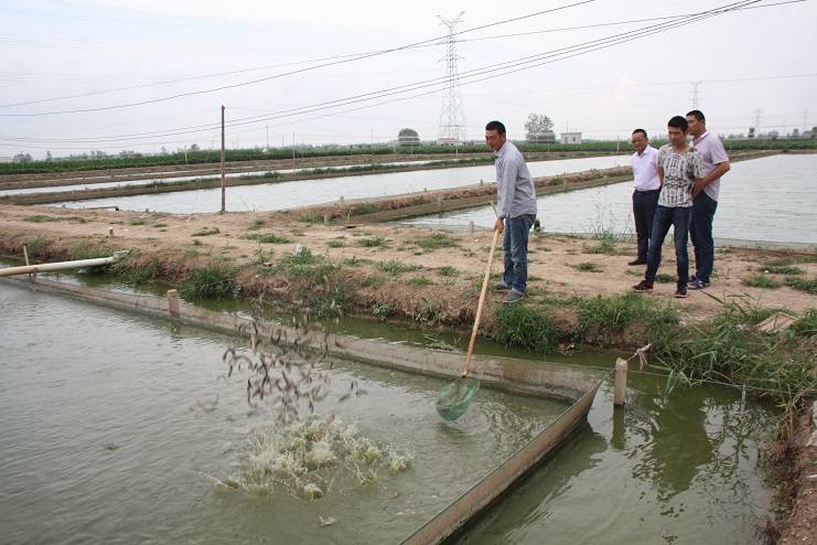 8月3日,在公司工会副主席王宏的带领下,我们来到圩丰镇大兴村,参观了泥鳅养殖户王成的泥鳅养殖基地。在参观中,王成详细给大家介绍了他所承包的这片养殖基地的规模以及泥鳅的养殖经验。据了解,泥鳅十分善于逃跑,春夏季雨水多,水位高,只要有一点缝隙,泥鳅会在一夜间全部逃光,因此池内四周要围上了厚密的围网,加强进排水管理,防止泥鳅逃逸。另外为了防止鸟类捕食泥鳅,还必须要在养殖区域上方布上“天网”,以减少不必要的损失。据据王成介绍,养殖泥鳅是一项投入较高、回报周期较长的项目,目前我国泥鳅主要是以区域养殖为主,而连云港地区养殖的泥鳅基本上都出口韩国。王成说,他目前进行的高密度泥鳅养殖亩产出估计在四千斤左右,虽然今年泥鳅收购价格较往年偏低,每斤在13.5元,但是由于产量高,因此今年的收入还是比较可观的。