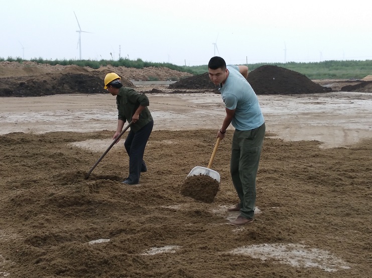 目前已经进入秋季,持续的晴热少雨天气虽然不利于人们的户外工作,但对需要阳光来晾晒有机肥的绿淮人来说,确是不可多得的好时机。8月19日一大清早,我们在绿淮肥业公司生产现场看到,该公司支部书记时宽银正带领几名工人进行着有机肥晾晒工作,另一名员工驾驶着铲车将有机肥源源不断的从出料口运送到晾晒区。据了解,这些有机肥在经过干湿分离、晾晒后将被储存起来,为以后生产出不同形状的有机肥颗粒做准备。据介绍,受原料影响,目前该公司设备尚未满负荷运转,产能仍有一定闲置。为了确保能够顺利完成年度生产经营目标,公司也正在积极与北欧农庄公司沟通协调,以进一步提高生产效率,实现效益最大化。(封杨)